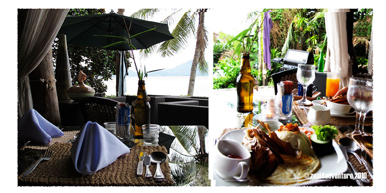 The cozy dining area overlooking the sea was where they serve lunch and dinner. The breakfast area was a different area closer to our rooms and the beach.
