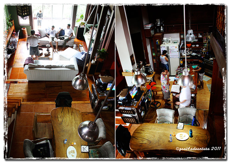 Taken from the 2nd floor:  Left photo — where Dr. Kalugdan entertains while Dra. Kalugdan happily slaves away in her territory that is the kitchen (right photo).