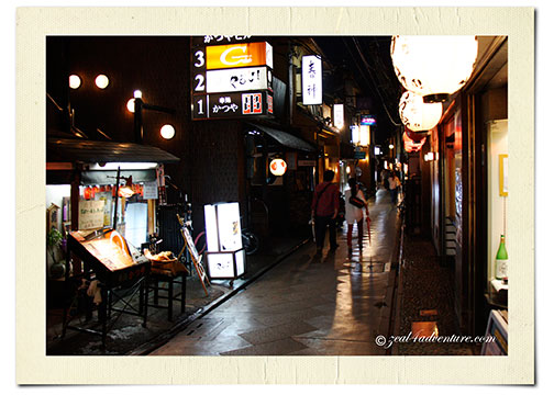 Across the Kamogawa river is Pontocho, said to be home to many geisha houses and traditional teahouses.
