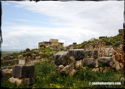 From the entrance, one can appreciate the green plateau that Volubilis seats on,