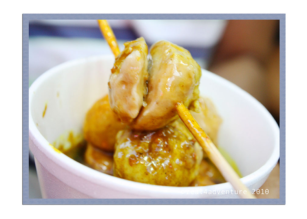 It was fun strolling through the shops gobbling through these tasty fishballs in satay sauce.