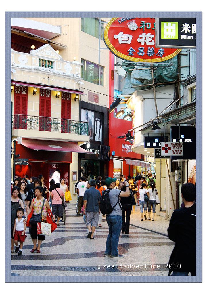 In Macau. Not only is the center an urban area with an old city, it is a World Heritage site to boot. Inscribed on 25th July 2005 by UNESCO, the Historic Centre of Macau is a product of cultural exchange between East and West. It could be the oldest, most complete and consolidated selection of European architectural legacy standing intact on Chinese Territory. The center spans 8 squares but 2 hours will only allow for 3 squares, a ruin, a church and a whole lot of eating and window-shopping.