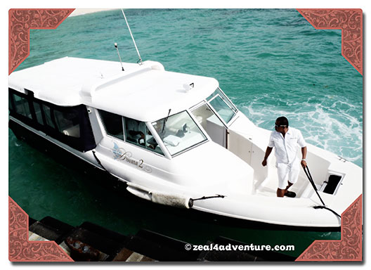 Welcome drinks, cold towel, nicely scented waiting room and a private speedboat to get you to the island… I could get use to this.