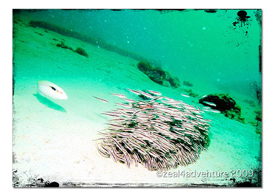 He pointed to my left and there, a short distance away, was a giant wall of fish, a silvery cloud of endless sardines against the blue backdrop of the deep, moving in one accord. I was awestruck. Never thought I’d ever get to see such a spectacle in our shores.