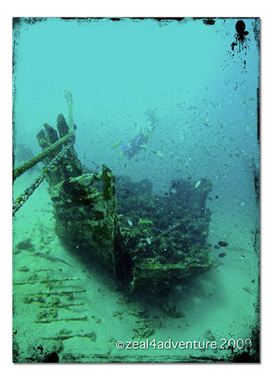 A resident school of bat friendly batfish and large surgeon fish make this a popular dive spot. Surrounded by sand, the wreck has attracted many eels, damsels, and trumpets.