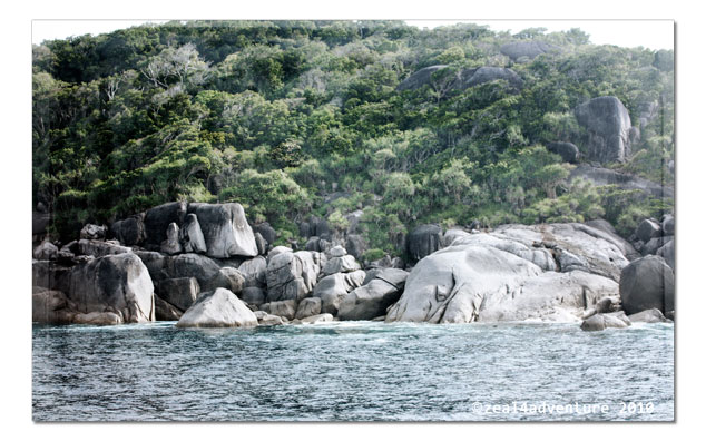 It looked inviting from our dive boat, the wonderful granite rock formation intrigued us no end. It was a no-brainer, we had to take time off from our dive and head to this bay called island No. 8, also known as Donald Duck Bay, The Boulders and Shoe Bay (Ao Guerk in Thai).
