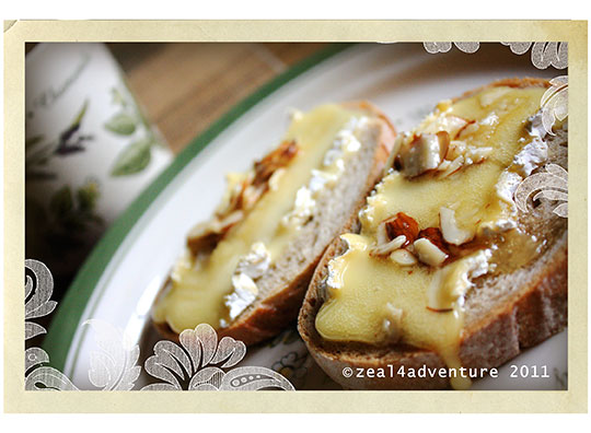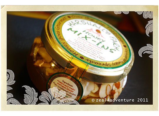 What struck me was this Honey Mix-ins, which brought about a lot of ideas on application. So I bought a bottle of the honey & sliced almonds hoping that it wouldn’t break or spill on me on my way home to the Philippines. Probably one of the best buys I had from the market. One real treat that I made from this honey (as soon as I landed) was topped a teaspoonful on Brie.
