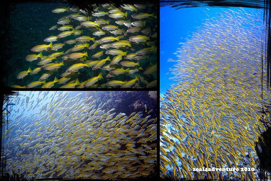 School of sharks — black tips and gray reefs everywhere. Babies, teenagers, full growns, fat ones, thin ones– all sizes just below our boat. We didn’t even have to swim far. At one point, I counted 23 sharks. TWENTY THREE! It’s like watching a 3D movie with front row seats. Amazing!