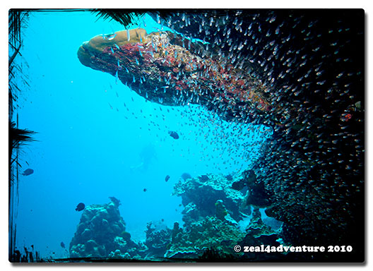 A relatively small dive site and a bit too crowded with divers all vying to see the huge extent of marine life in the area. Whale Sharks are usually sighted during the months of April and May but for some reason, they elude me once more. And so my pursuit of that elusive butandings continues.