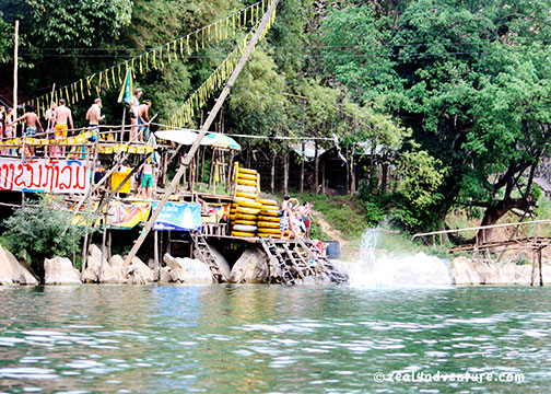At the confluence of the laoxi and the liwu river stands Cihmu Bridge, an H-shape hanging bridge where marble stone lions stand on each side. The rock beneath is of schist and white marble, resembling a frog with a crown (can you see it? 🙂 ). The crown is actually a pavilion built on top of the frog-like rock.