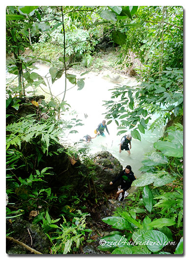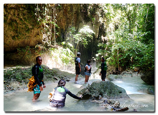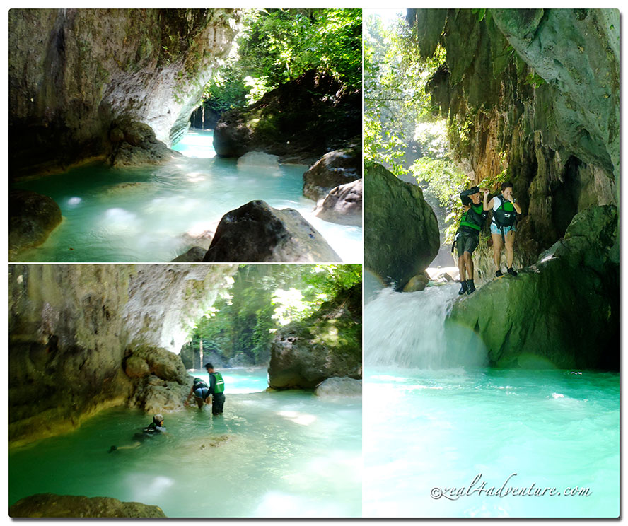 It requires swimming, river trekking, jumping off waterfalls and a bit of rappelling.  Canyoneering, as they call it, is a sport of exploring a canyon by engaging in rappelling, rafting and waterfall jumping.