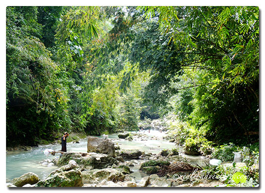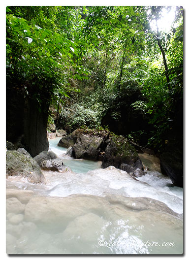 A short trek will take you to the first falls where one can enjoy it with nary a need to swim if that is the preference (bamboo rafts are available to take people to the falls).