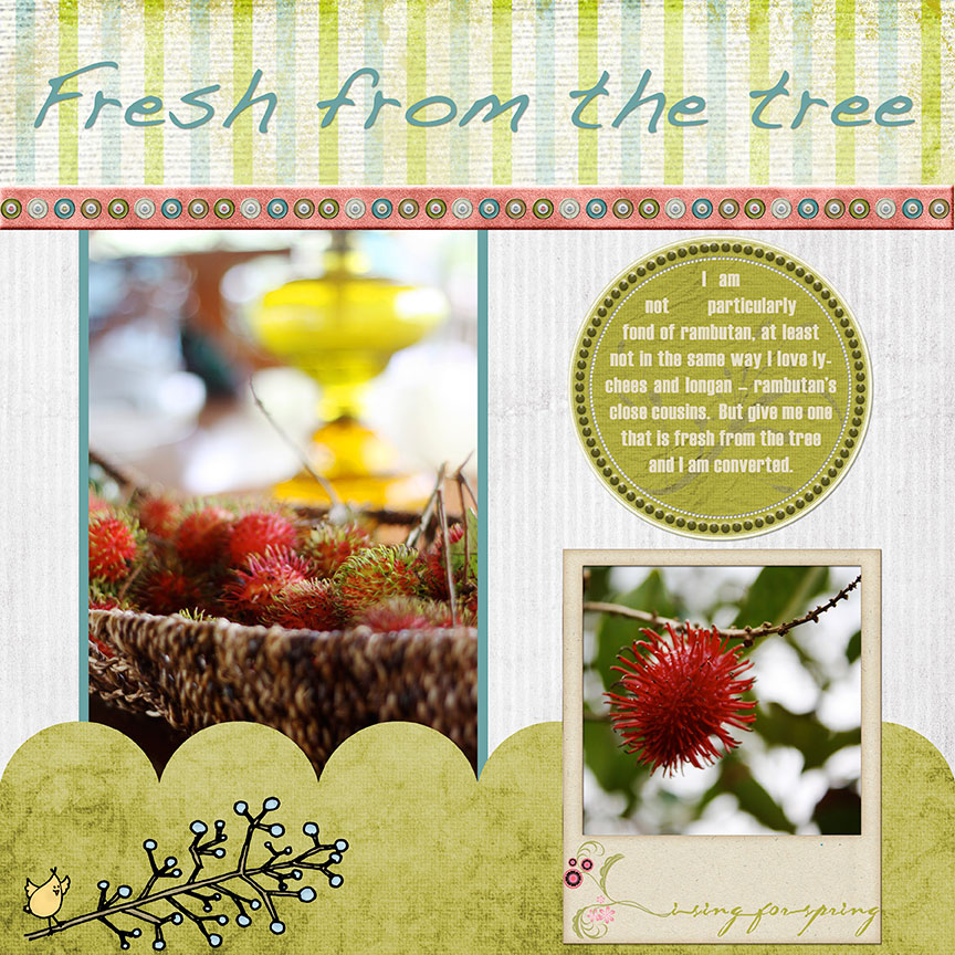 I am not particularly fond of rambutan, at least not in the same level of fondness I have for lychee and longan – rambutan’s close cousins. But one glorious day I was given some that was fresh from the tree and it has gained a few notches on my gustatory scale.
