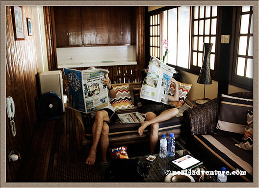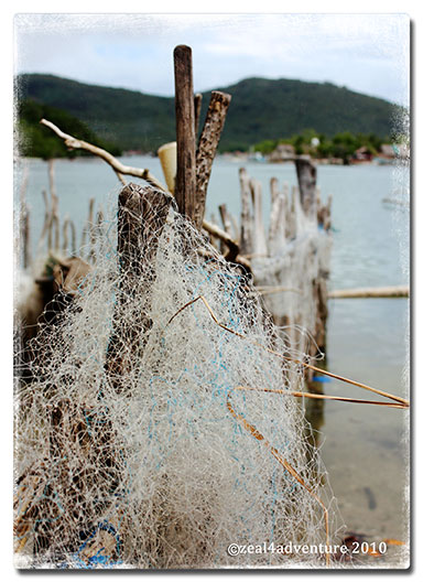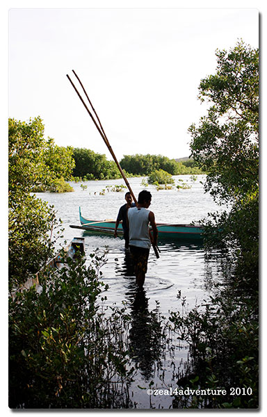 On our way back to the resort, the choppy waters were too big for our small boat, breaking an outrigger.