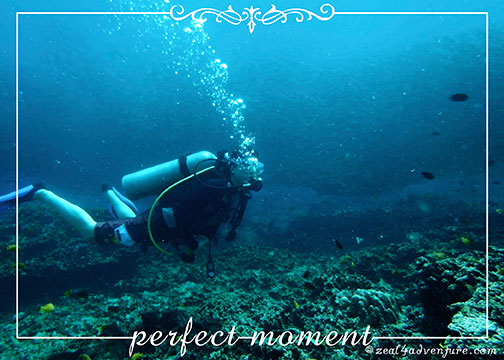 So we got up early the next day, sore from yesterday’s canyoning, and headed to this tiny island called Pescador. Among the many impressive dive spots in Moalboal, Pescador is described to be their “jewel”. My friends indulged and shared the cost of the banca (outrigger boat) with me. They went snorkeling while I explored the world under… ok, that doesn’t sound right but you know what I mean. 😉