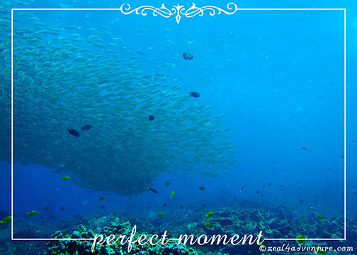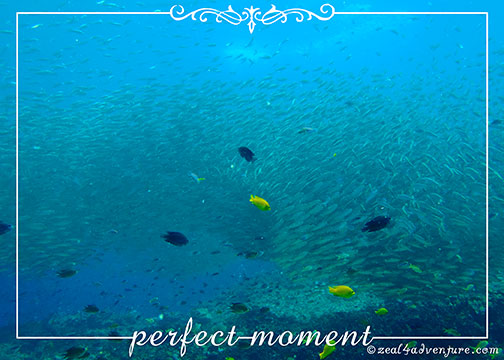 He pointed to my left and there, a short distance away, was a giant wall of fish, a silvery cloud of endless sardines against the blue backdrop of the deep, moving in one accord. I was awestruck. Never thought I’d ever get to see such a spectacle in our shores.